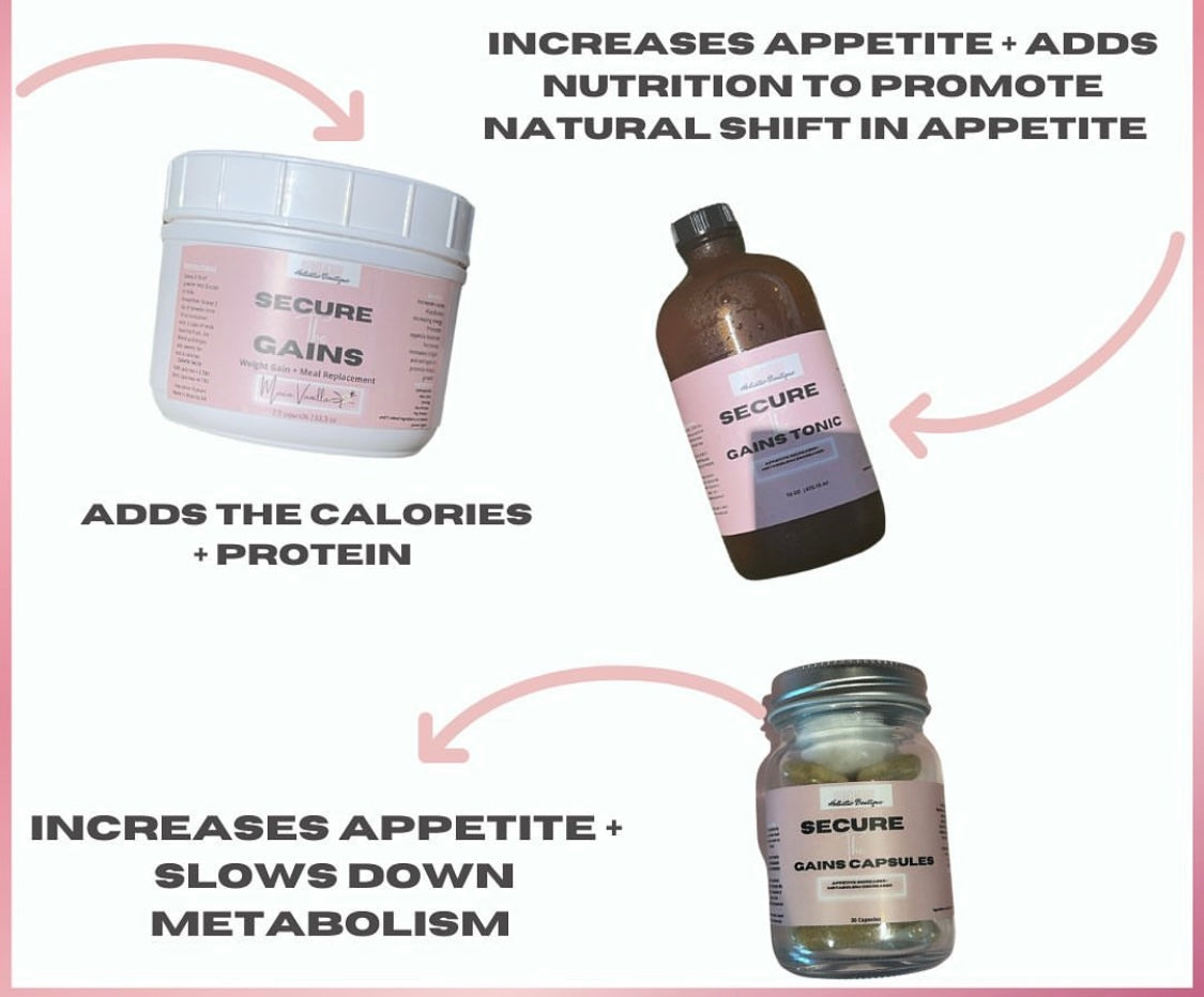 Our weight gain box will give you all three and needed supplements to increase weight, naturally capsules, weight gain powder as well as the tonic, which is a appetite increase you are on your way to gainzzzzzzzzz